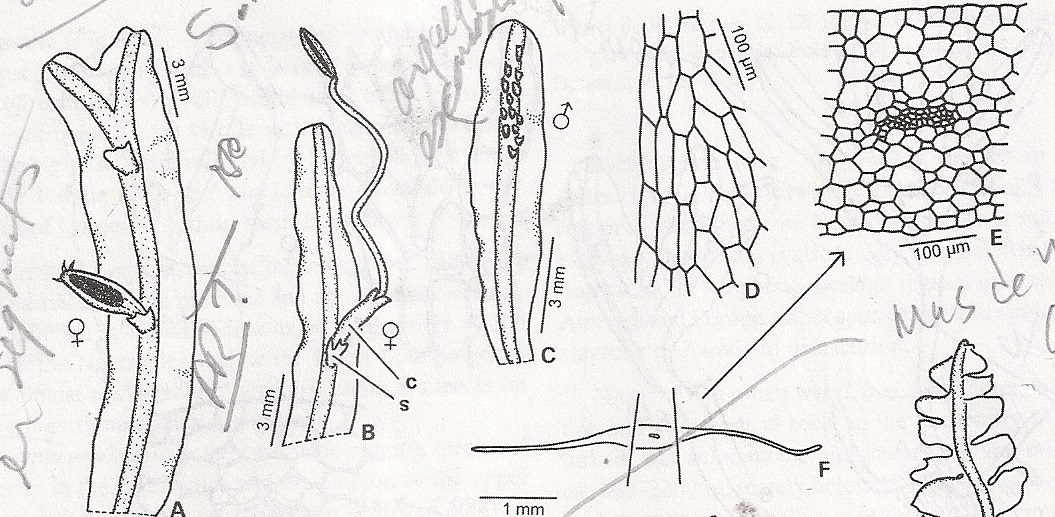 RICCARDIA FUCOIDEA ES UU GÉNERO MUY ABUNDANTE CON UN TALO DE VERDE ANEGRO DE 1 A 15 CM POR 1 A 2MM WIDE MONOICO VARIAS VECES PINADO